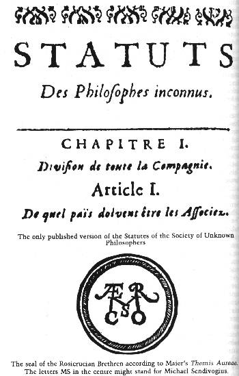 In 1691 there appeared in Paris an edition the Letters preceded by Statuts des Philosophes inconnus of 30 pages [25]. Could these be the same statutes? Sendivogius was writing his letters to a person in France and sent him the statutes, so it seems possible that they survived and were published there. But he writes that the statutes were in Latin. The well known French researcher Robert Amadou [26] has discovered two Latin manuscript copies of the Letters, one of which (Bibliotheque de Carpentras, Mss 288) also contains Statuta philosophorum incognitorum! As I have not been able to read these statutes, I cannot comment on their contents and how they compare with the rules of Rosicrucians as outlined in the Manifestos, but their very existence is quite meaningful.
