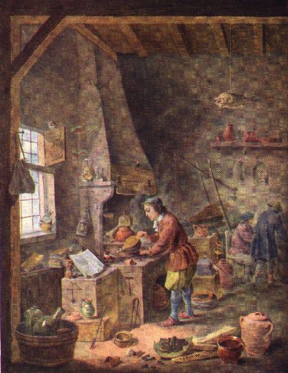 A work by J.J. Rink, based on a painting of David Teniers The 'Laboratory, 1793.< ![]()