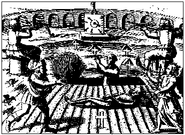 I will not attempt in this short article to analyse the text and its relationship to the emblems, however, I would like to present some notes that may help others to penetrate this rich and complex mass of symbolism. Often in attempting to grasp within our thought the ideas illustrated by the images or sense with our feelings the symbolic patterns that are worked into such esoteric documents, we can get lost and discouraged if we merely jump headlong into the mass of symbolism. We need some esoteric tools (in computer terms, a disassembler) to unravel the code and label some of the more obvious structural elements. Once we have an entry point into the esoteric code we can work this into meditative exercises that slowly reveal the spiritual essence woven into the allegorical emblematic structure. Readers of this Journal will be aware that my approach to such sequences of emblems is to see them as a whole entity, rather than as individual emblems. It is my belief, confirmed by my experience of working with such emblem structures, that the designers of such emblem systems worked various patterns into the symbolism of the whole sequence, so that echoes, pairings, invertions, mirrorings of symbols occur across the individual emblems. Often I find that an emblem system seems to have (at least one) underlying geometric pattern and when the emblems are arranged in this pattern much of the confusing fog of symbolism will dissipate and the sequence begins to take on a coherent form. Thus my work with the Rosarium series, the Crowning of Nature , the Mylius engravings, the Lambspring, and other such sequences.