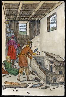 Domenico Beccafumi (c1486-1551) was an Italian mannerist painter, of the Sienese school. He did experiment with rather free woodcuts, and in 1440 he produced a series of ten alchemical emblematic woodcuts.