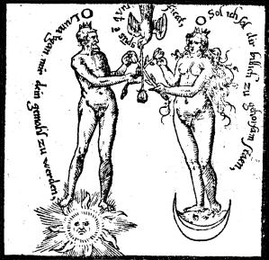 The Artis auriferae, Basle, 1593 included the twenty images from the Rosarium but these were recut woocuts, with some minor variations and in a more coarse style. These lack the fluidity of line of the original.