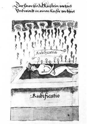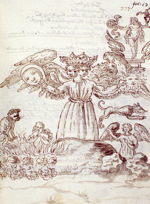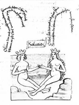 There are many manuscript versions of the Rosarium philosophorum some with line drawings and others with coloured images. All appear to have been made later than the printed version. There is are earlier manuscripts with drawings similar to some of the Rosarium images. This is investigated in the possible sources for the Rosarium images side gallery.
