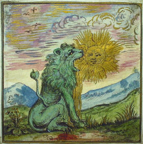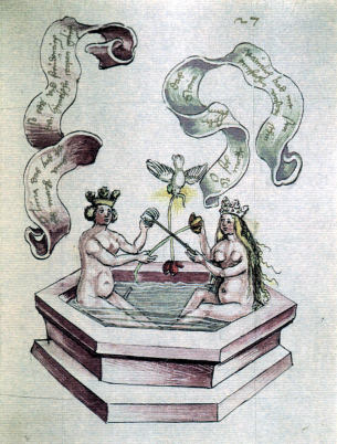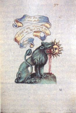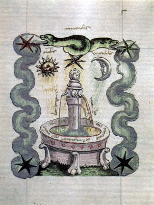 This version has line drawings. It has a number ofsubstantial variations in the symbolism. For example, the first image of the fountain. It also lacks the Green Lion image.