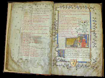 There is a work dating to the 14th century entitled the Rosaire usually attributed to Arnauld de Villeneuve. Though this does not have the same text and is a different work, it bears a similar title and the author of the Rosarium Philosophorum may have drawn on this work. Opposite is the earliest manuscript copy of the Rosaire now in the Biblioteca Nazionale in Turin.