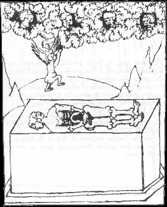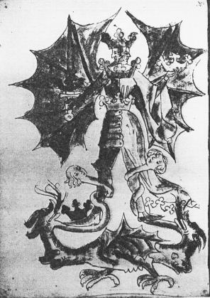 There is one definite source for some of the Rosarium images, the Buch der heiligen Dreifaltigkeit manuscript of around 1410. This has three images from the Rosarium and predates it by 140 years. The second, less certain source, is another German work, the Hartung vom Hoff manuscript dated just one year before the appearance of the Rosarium.