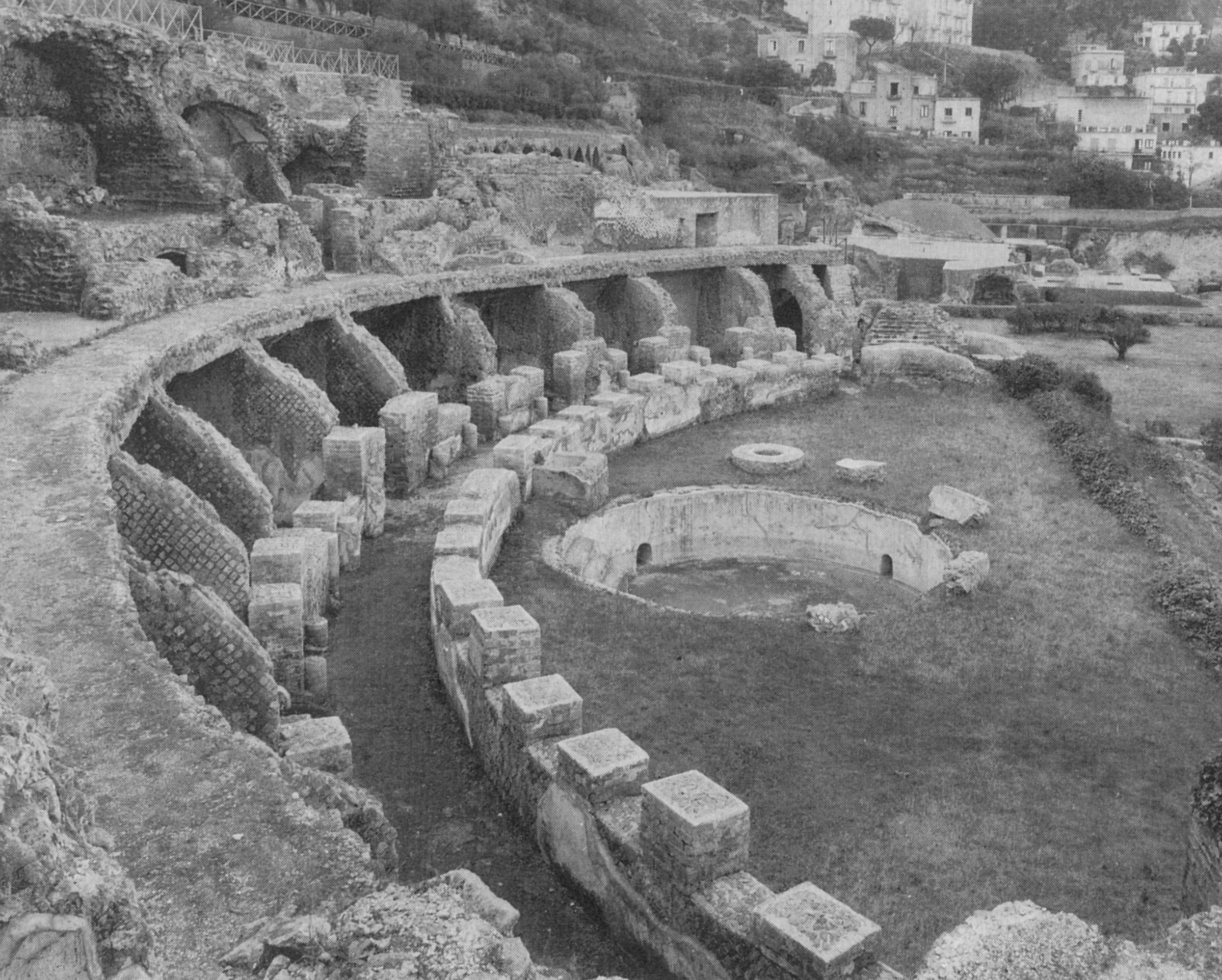We note the group of cubicles with the lozenge shaped decorative tiles. Also on the right is a round plunge type pool which could hold a large group. Also we note small individual sized baths for immersing ones legs or lower body.