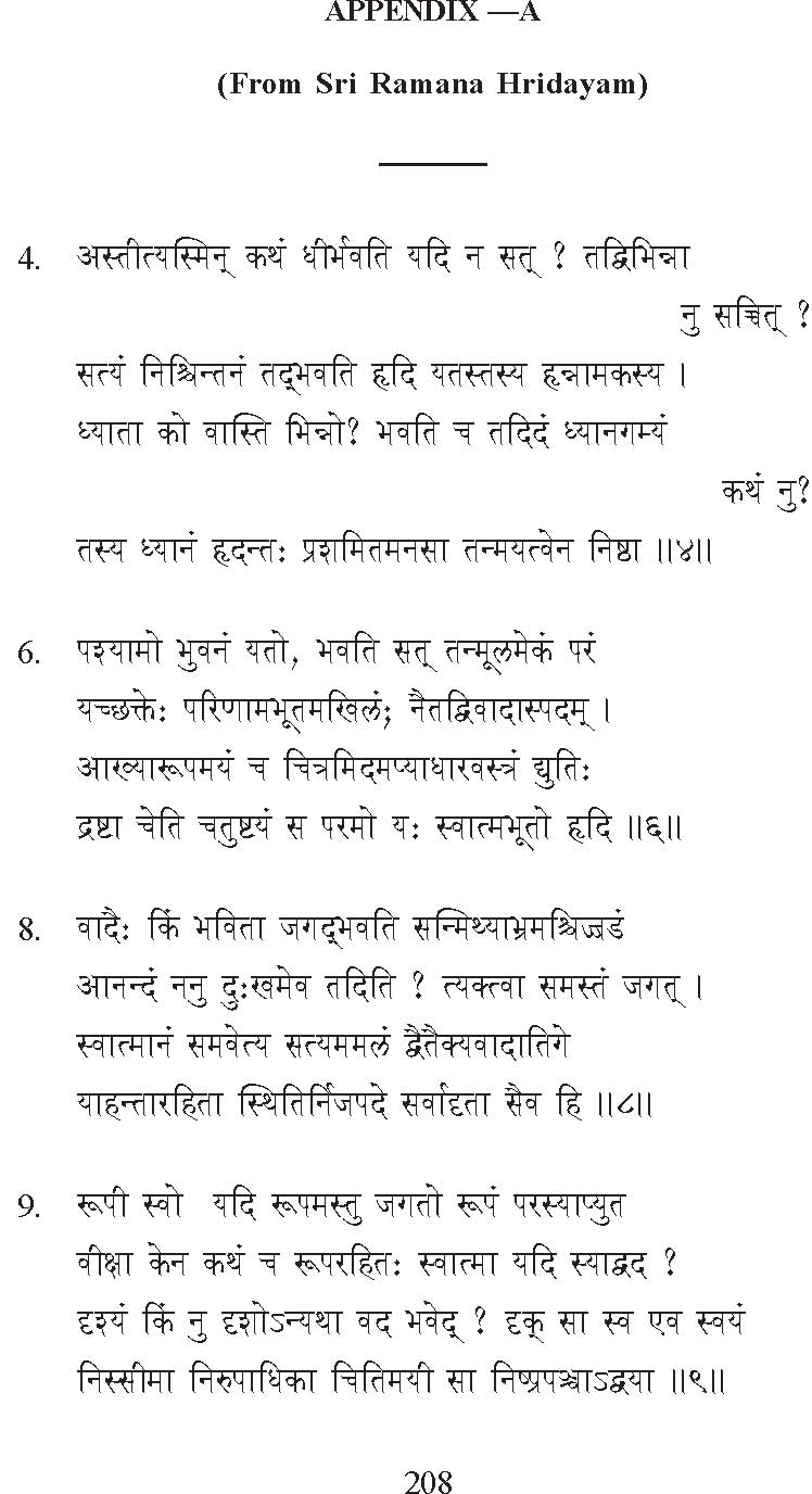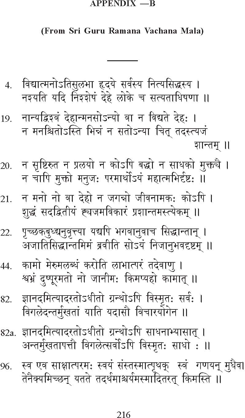 * The complete Sanskrit text of Sri Ramana Hridayam together with an English translation is published by us in a book called Revelation, and an English translation of the whole of Guru Ramana Vachana Mala is published by us in a separate book. For details about these and other books in English on the life and teachings of Sri Bhagavan, the reader may refer to the bibliography given at the end of this book.