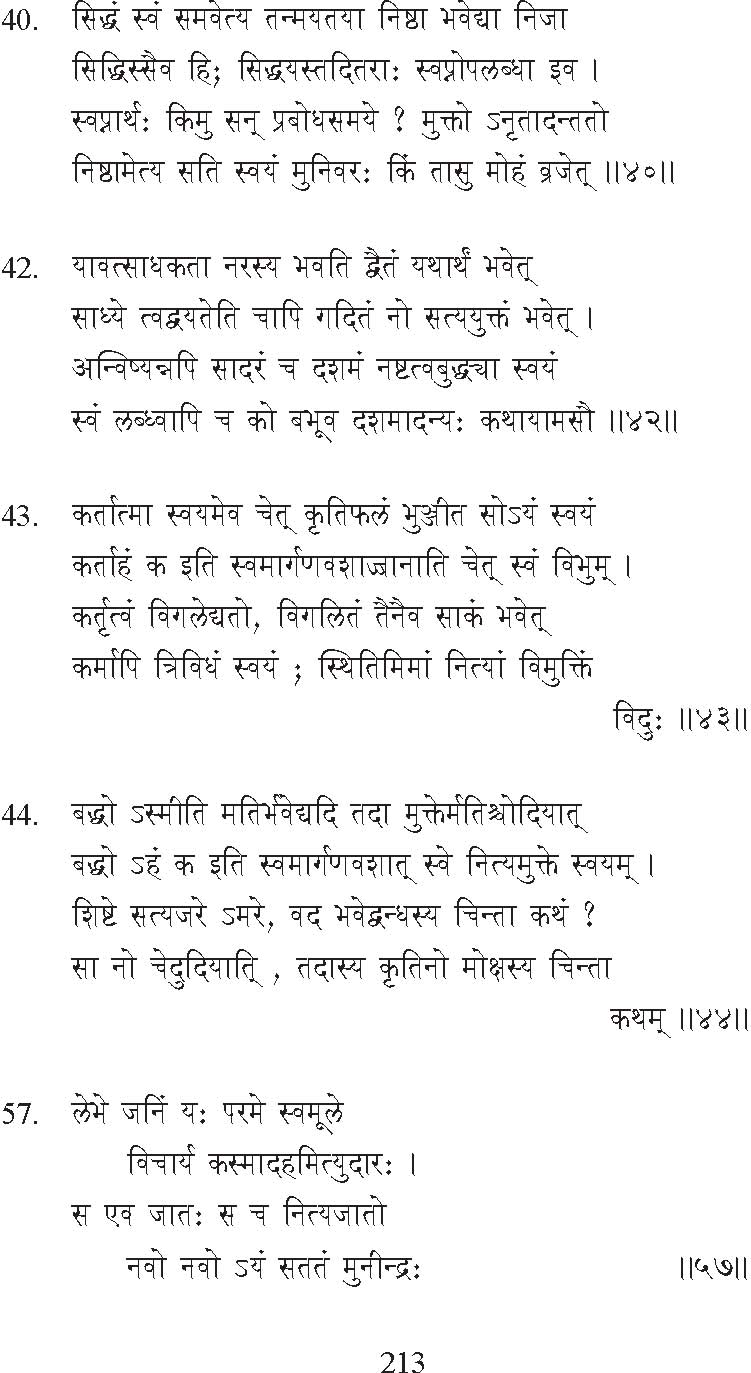 being an outcome of this ignorance, this great Event is also called the destruction or dissolution of the mind. Hence it is strictly true that for the Sage there is no mind nor body nor world. But that does not mean that body and mind are destroyed in the sense that other people will cease to see them; for them the Sage’s body and mind will continue to appear, and they would appear to be affected by events, and hence there can be a further history of the Sage. The Sage himself may seemingly be active in diverse ways, though these actions are not really his. Hence the course of events that occurred after this great Event — some of which are narrated here — do not really belong to the Sage; they do not affect him in any way.