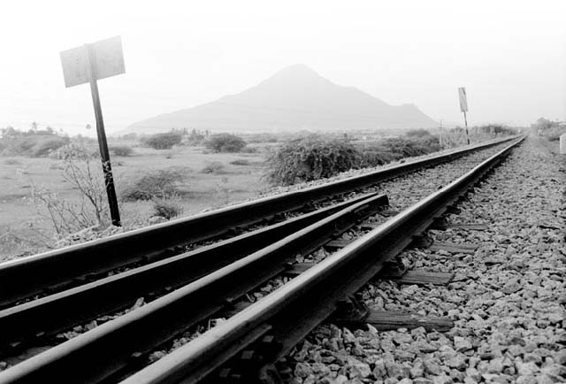 Arunachala as seen from the railway bridge mentioned by Bhagavan, where the Big Temple appears in line with the Mountain Peak 17