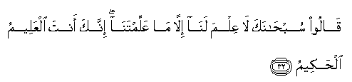 32. Qaloo subhanaka la AAilma lana illa ma AAallamtana innaka anta alAAaleemu alhakeemu