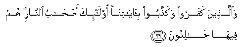 39. Waallatheena kafaroo wakaththaboo bi-ayatina ola-ika as-habu alnnari hum feeha khalidoona