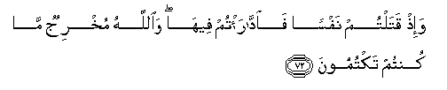 72. Wa-ith qataltum nafsan faiddara/tum feeha waAllahu mukhrijun ma kuntum taktumoona