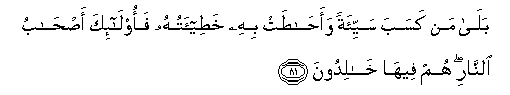 81. Bala man kasaba sayyi-atan waahatat bihi khatee-atuhu faola-ika as-habu alnnari hum feeha khalidoona