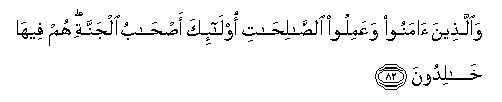 82. Waallatheena amanoo waAAamiloo alssalihati ola-ika as-habu aljannati hum feeha khalidoona
