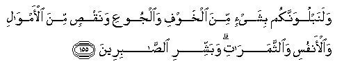 155. Walanabluwannakum bishay-in mina alkhawfi waaljooAAi wanaqsin mina al-amwali waal-anfusi waalththamarati wabashshiri alssabireena