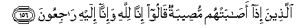 156. Allatheena itha asabat-hum museebatun qaloo inna lillahi wa-inna ilayhi rajiAAoona