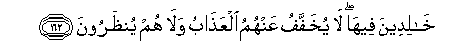 162. Khalideena feeha la yukhaffafu AAanhumu alAAathabu wala hum yuntharoona
