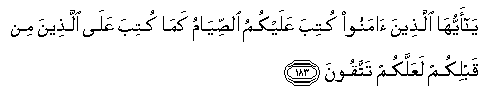 183. Ya ayyuha allatheena amanoo kutiba AAalaykumu alssiyamu kama kutiba AAala allatheena min qablikum laAAallakum tattaqoona