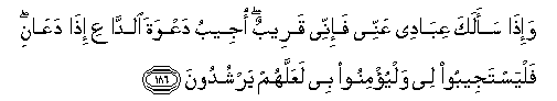 186. Wa-itha saalaka AAibadee AAannee fa-innee qareebun ojeebu daAAwata alddaAAi itha daAAani falyastajeeboo lee walyu/minoo bee laAAallahum yarshudoona