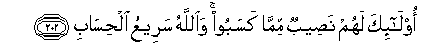 202. Ola-ika lahum naseebun mimma kasaboo waAllahu sareeAAu alhisabi