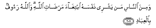 207. Wamina alnnasi man yashree nafsahu ibtighaa mardati Allahi waAllahu raoofun bialAAibadi