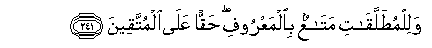 241. Walilmutallaqati mataAAun bialmaAAroofi haqqan AAala almuttaqeena