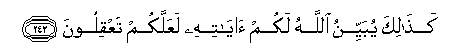 242. Kathalika yubayyinu Allahu lakum ayatihi laAAallakum taAAqiloona