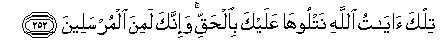 252. Tilka ayatu Allahi natlooha AAalayka bialhaqqi wa-innaka lamina almursaleena