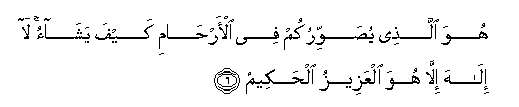 6. Huwa allathee yusawwirukum fee al-arhami kayfa yashao la ilaha illa huwa alAAazeezu alhakeemu