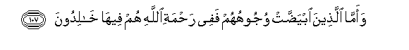 107. Waamma allatheena ibyaddat wujoohuhum fafee rahmati Allahi hum feeha khalidoona