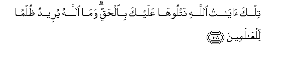 108. Tilka ayatu Allahi natlooha AAalayka bialhaqqi wama Allahu yureedu thulman lilAAalameena
