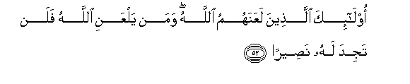 52. Ola-ika allatheena laAAanahumu Allahu waman yalAAani Allahu falan tajida lahu naseeran