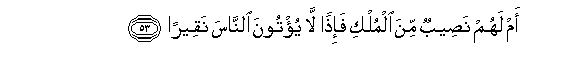 53. Am lahum naseebun mina almulki fa-ithan la yu/toona alnnasa naqeeran