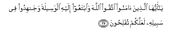 35. Ya ayyuha allatheena amanoo ittaqoo Allaha waibtaghoo ilayhi alwaseelata wajahidoo fee sabeelihi laAAallakum tuflihoona