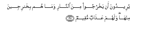 37. Yureedoona an yakhrujoo mina alnnari wama hum bikharijeena minha walahum AAathabun muqeemun