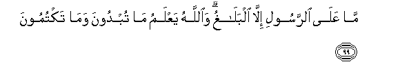 99. Ma AAala alrrasooli illa albalaghu waAllahu yaAAlamu ma tubdoona wama taktumoona