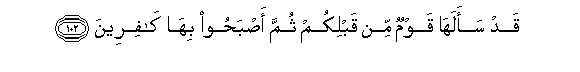 102. Qad saalaha qawmun min qablikum thumma asbahoo biha kafireena
