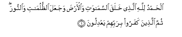 1. Alhamdu lillahi allathee khalaqa alssamawati waal-arda wajaAAala alththulumati waalnnoora thumma allatheena kafaroo birabbihim yaAAdiloona