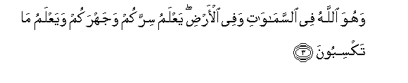 3. Wahuwa Allahu fee alssamawati wafee al-ardi yaAAlamu sirrakum wajahrakum wayaAAlamu ma taksiboona