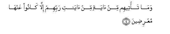 4. Wama ta/teehim min ayatin min ayati rabbihim illa kanoo AAanha muAArideena