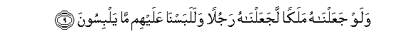 9. Walaw jaAAalnahu malakan lajaAAalnahu rajulan walalabasna AAalayhim ma yalbisoona