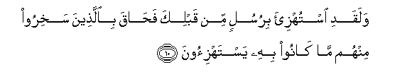 10. Walaqadi istuhzi-a birusulin min qablika fahaqa biallatheena sakhiroo minhum ma kanoo bihi yastahzi-oona