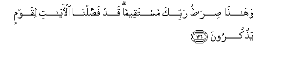 126. Wahatha siratu rabbika mustaqeeman qad fassalna al-ayati liqawmin yaththakkaroona