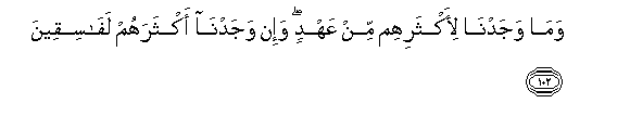 102. Wama wajadna li-aktharihim min AAahdin wa-in wajadna aktharahum lafasiqeena