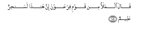 109. Qala almalao min qawmi firAAawna inna hatha lasahirun AAaleemun