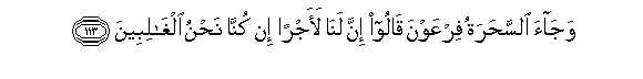 113. Wajaa alssaharatu firAAawna qaloo inna lana laajran in kunna nahnu alghalibeena