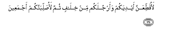 124. LaoqatiAAanna aydiyakum waarjulakum min khilafin thumma laosallibannakum ajmaAAeena