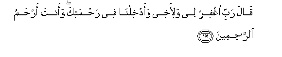 151. Qala rabbi ighfir lee wali-akhee waadkhilna fee rahmatika waanta arhamu alrrahimeena