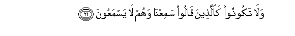 21. Wala takoonoo kaallatheena qaloo samiAAna wahum la yasmaAAoona