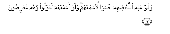 23. Walaw AAalima Allahu feehim khayran laasmaAAahum walaw asmaAAahum latawallaw wahum muAAridoona